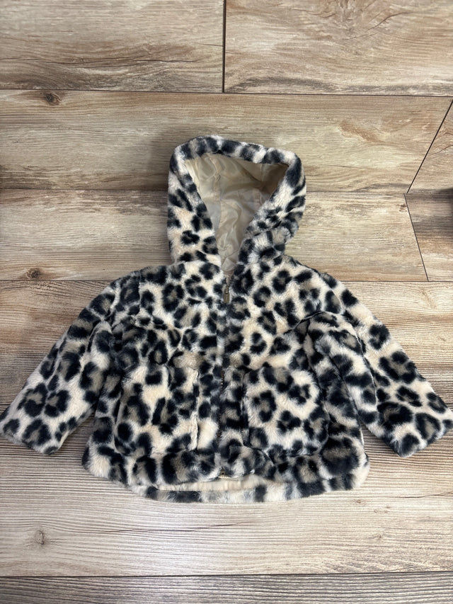 Old Navy Plush Leopard Print Full Zip Jacket Beige sz 12-18m