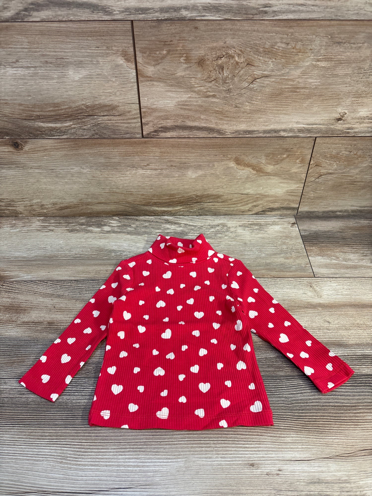 Old Navy Ribbed Heart Print Turtle Neck Shirt Pink sz 12-18jm