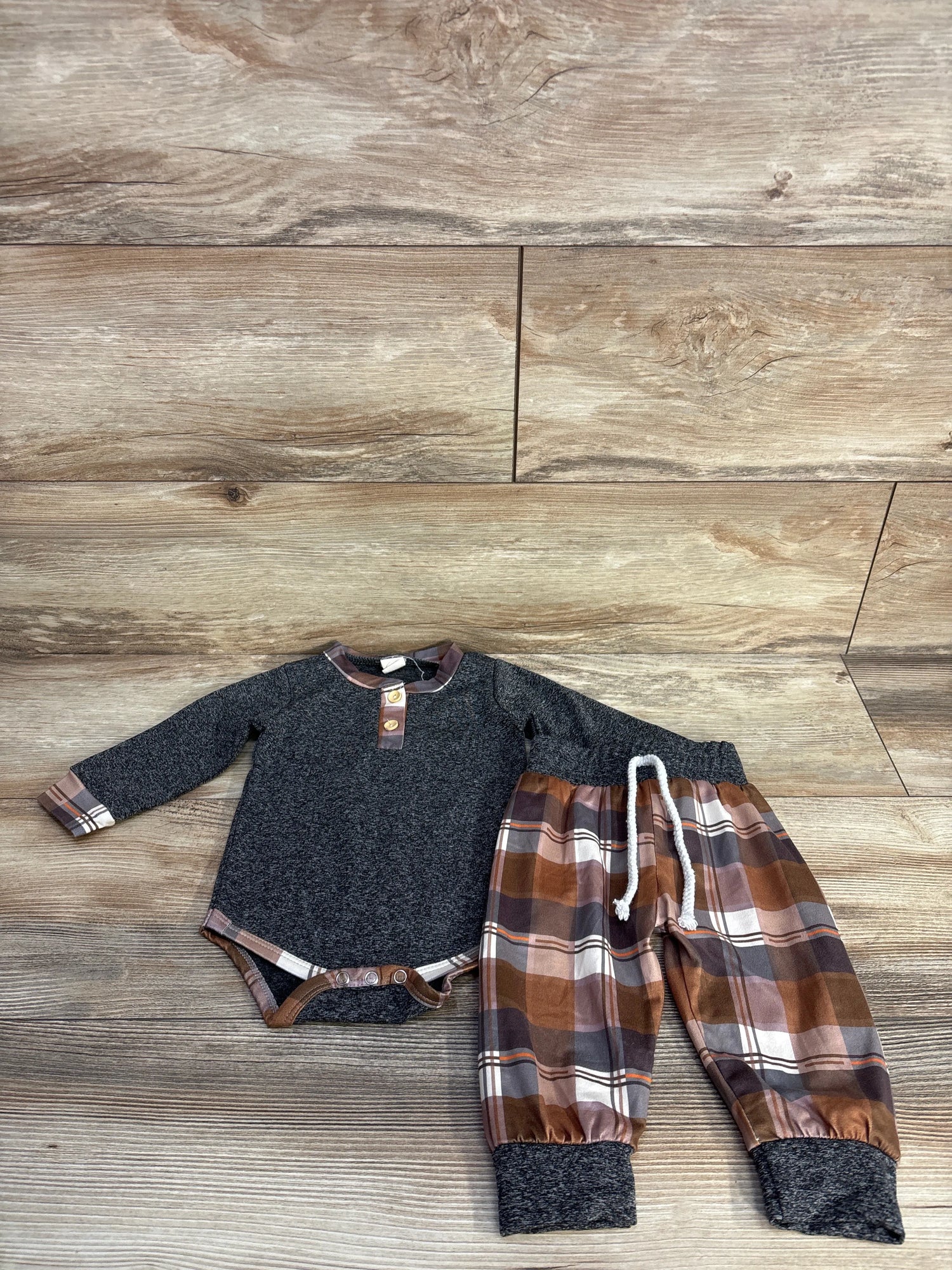 Plaid 2pc Bodysuit & Pants Set Grey sz 6-9m