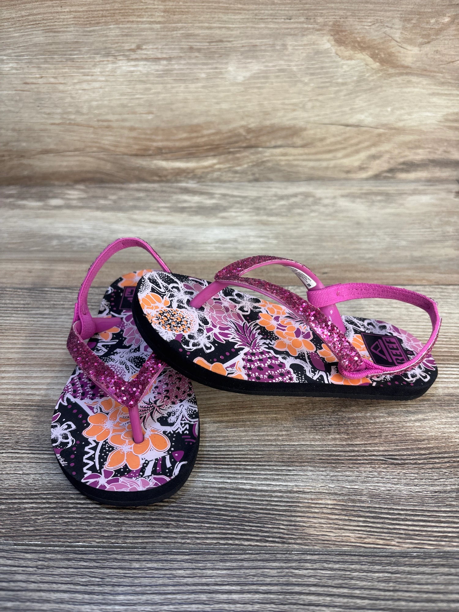 Reef Little Stargazer Pineapple FLoral Flip Flops Pink sz 9c