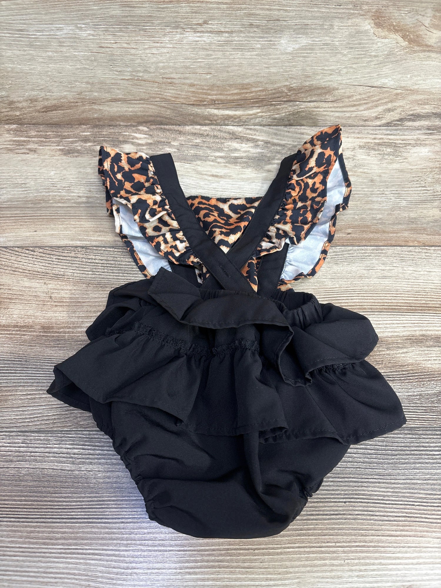 Ruffled Leopard Print Overall Bubble Romper Black sz 0-3m