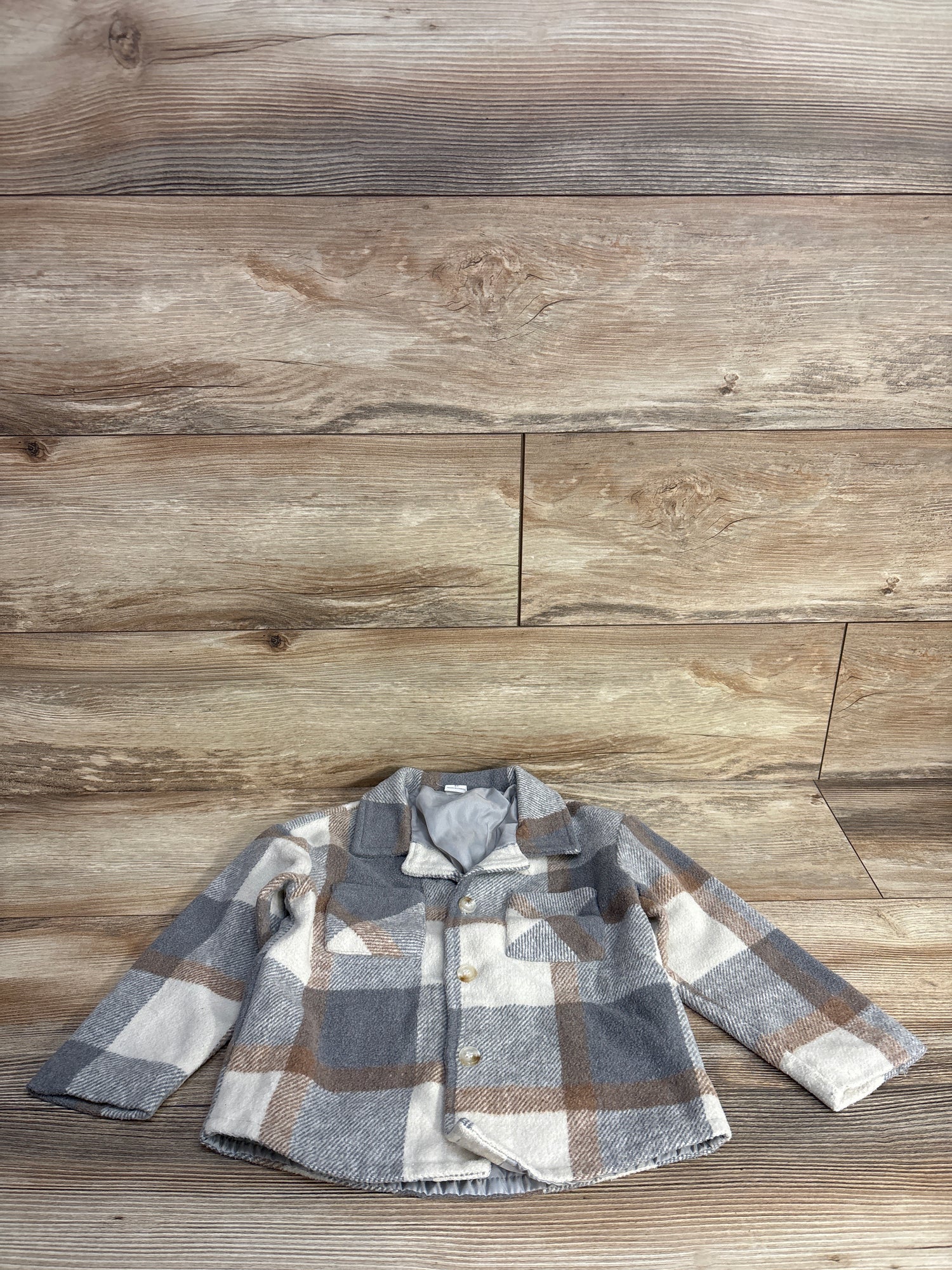 Shein Plaid Pea Coat Grey sz 5T